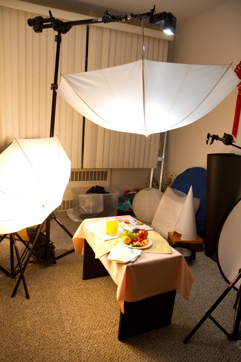 Top light and the reflector are mainly for adding enough ambient light. The umbrella on the back actually does not add much effect. It is only effective when you shooting from low angle and you want to see the background also getting enough light. but for my sample photo, it does not matter. You can not see the background because I was shooting top down.