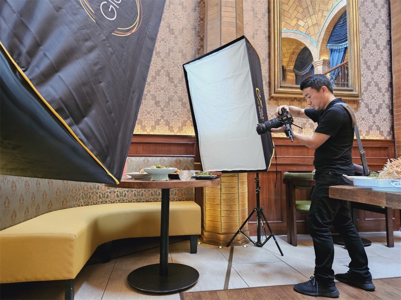 最后来些拍摄幕后花絮,通常拍餐馆我是请不起助手的,也只有这样比较大的工才能请得起我的得力助手。